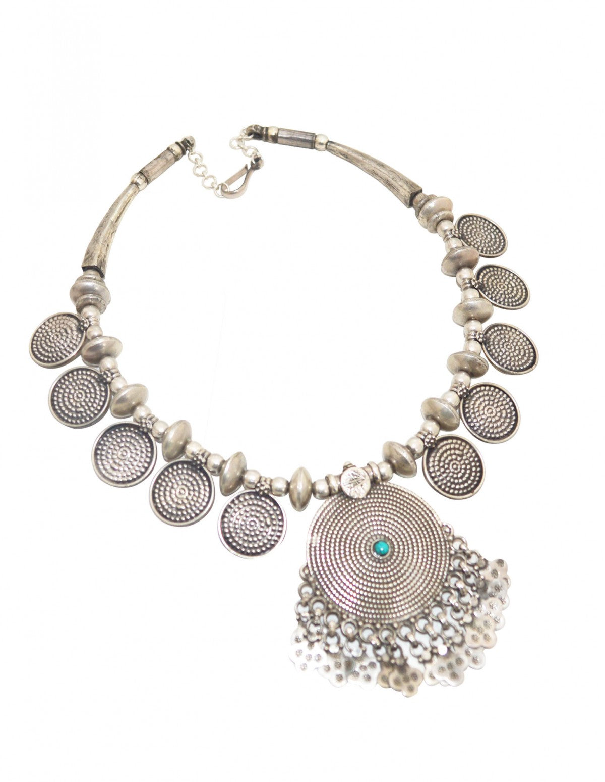 Spiral pendant necklace made from stamping work . Necklace is handcrafted in 92.5% silver . Length of the necklace is about 24 inch