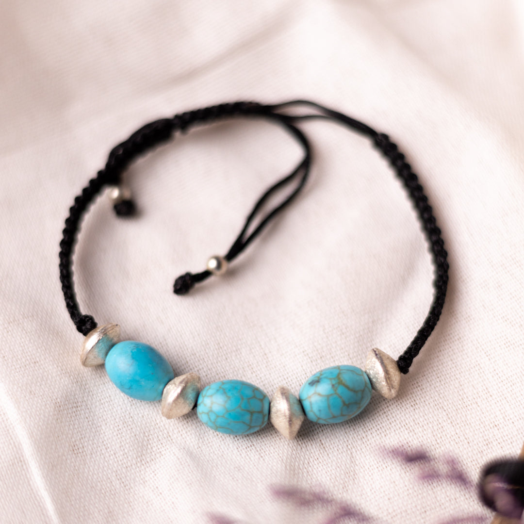 Turquoise Bead Stone Bracelet with 92.5 Silver Beads