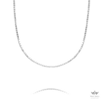 The Box Chain Necklace is a modern classic that fits right into any wardrobe. With the clean and square links, this 1.5mm chain adds just the right amount of shimmer without being over the top. Whether you're dressing up for the office, heading out for the casual outing, or layering it with your favourite silver necklaces.