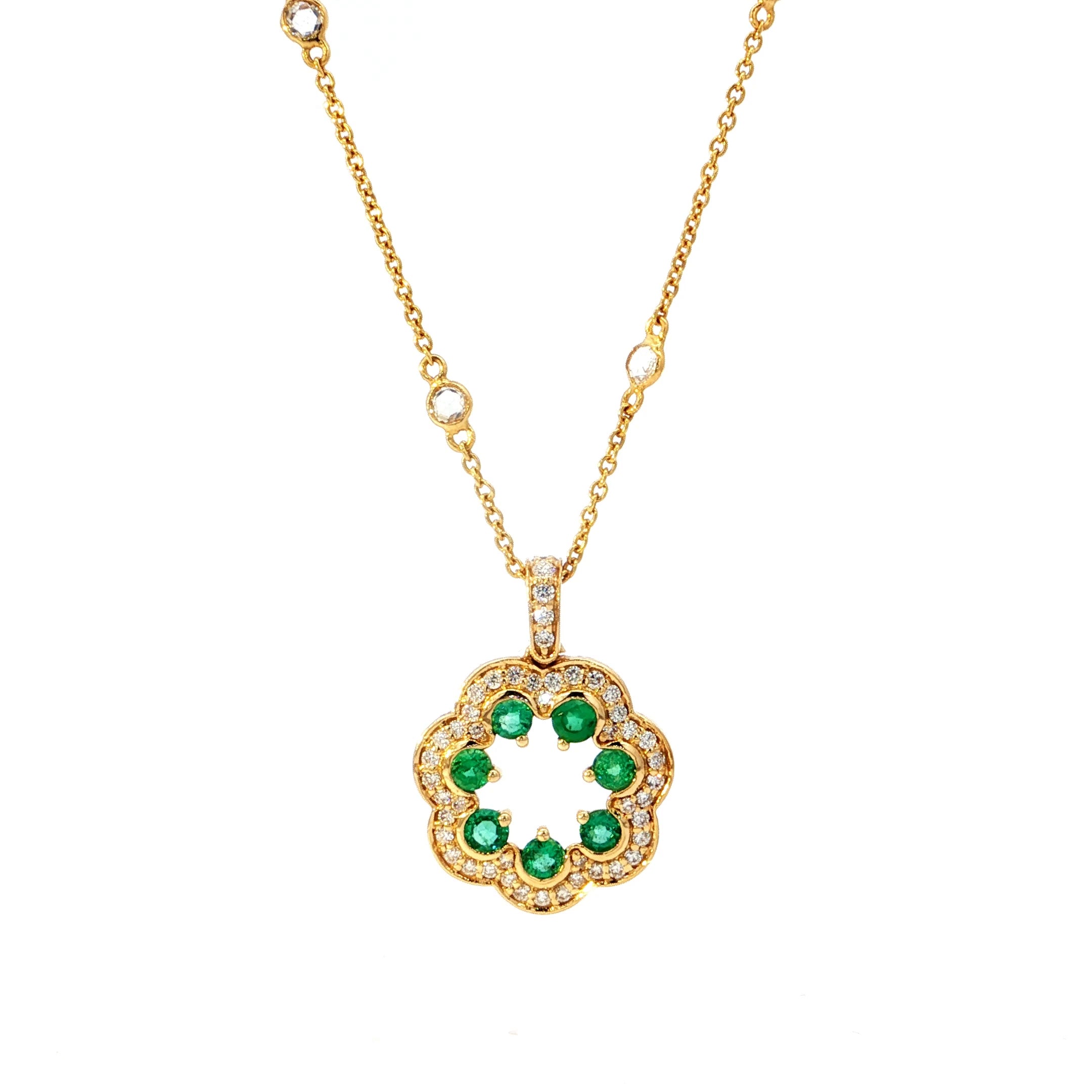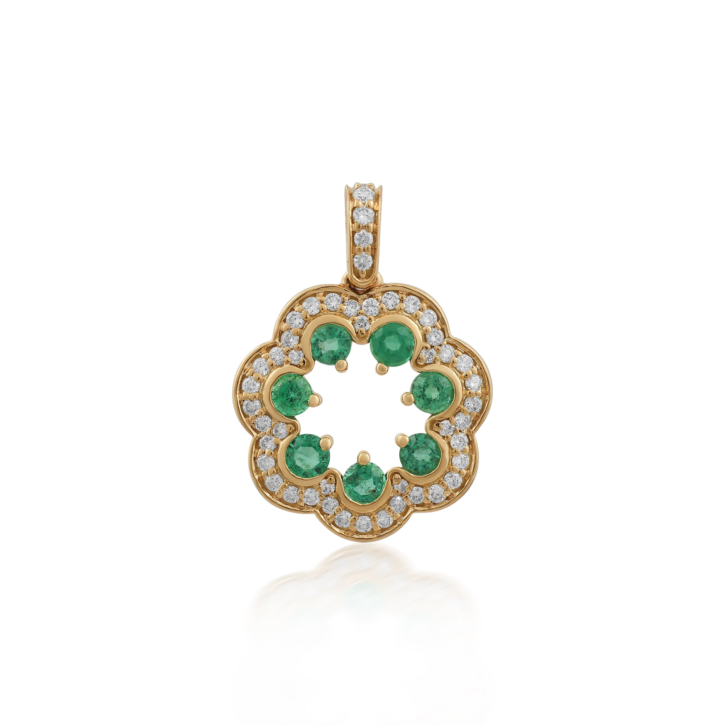 The Florentian Gold Pendant Necklace is a representation of floral beauty with a modern touch. The lush green emeralds form a bloom, encircled by a halo of shimmering diamonds. Set in yellow gold, this pendant showcases a unique charm that's perfect for layering or wearing solo as a statement piece of jewellery.