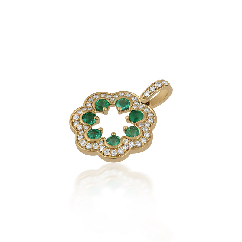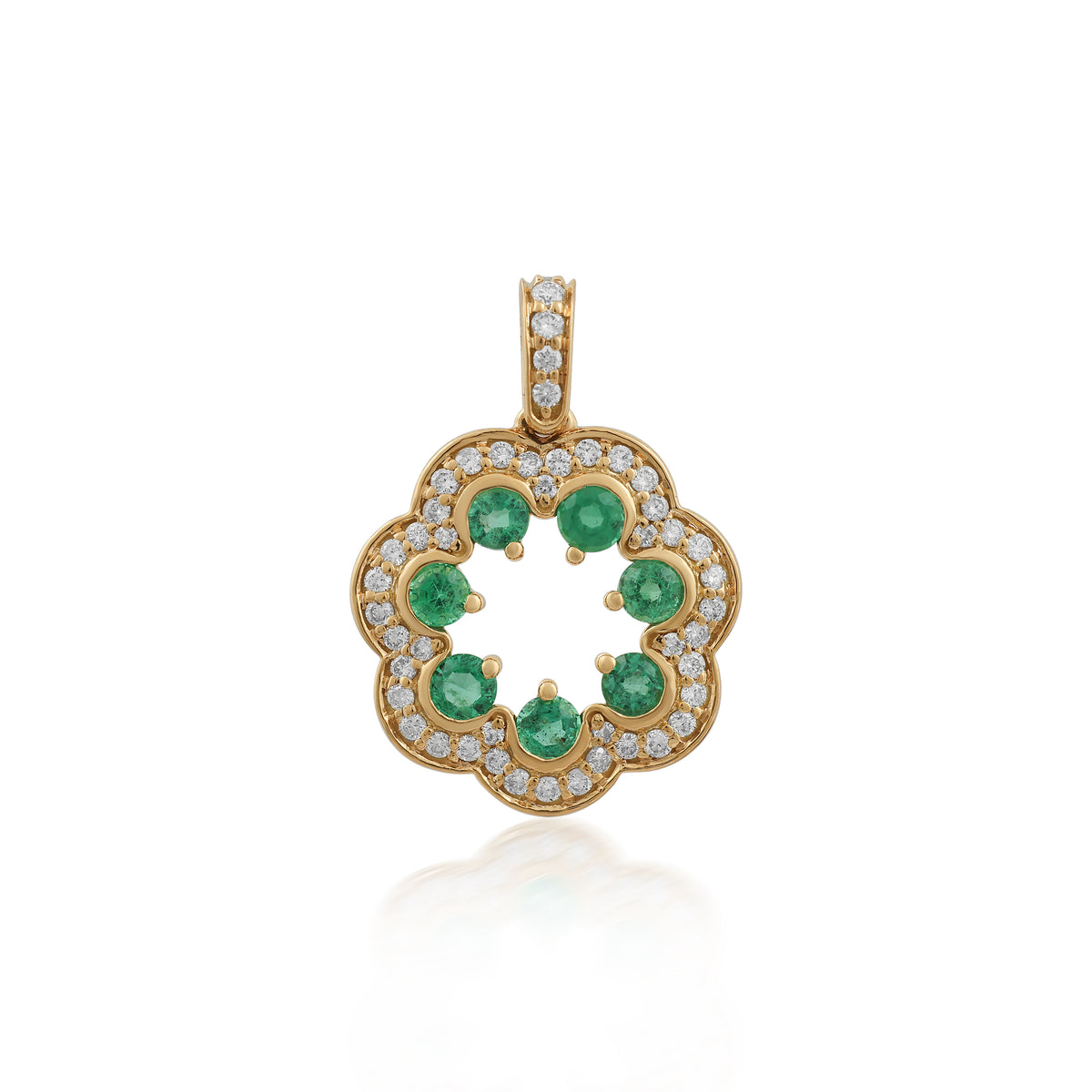Florentina – Gold Emerald & Diamond Floral Pendant With Chain
