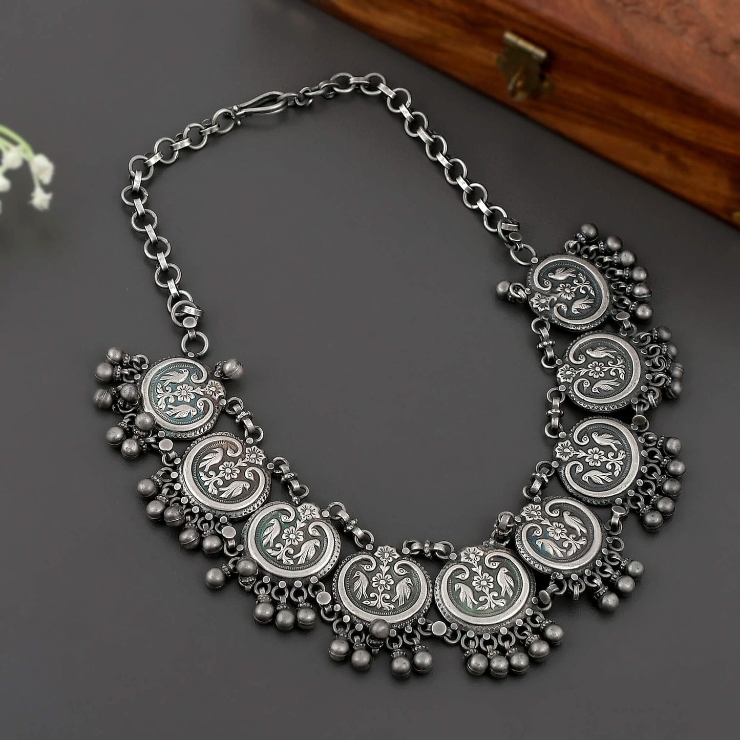- Apply your lotions, perfumes, or sprays before putting on your jewellery. Direct contact can dull the shine or damage the silver shine.