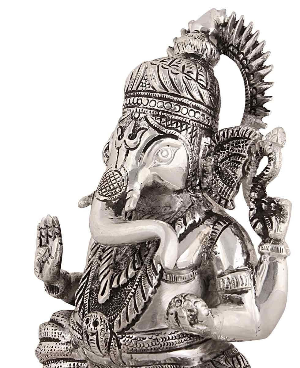 Lord Ganesha/Vighnaharta Silver Idol designed by our skilled artisans, to offer excellent quality work, manufactured with pure silver 925 and weighted for 919 grams. Our offered products are ideally used for offering prayer purposes and we have used best quality silver for our products. These offered products are highly durable and available at nominal price range.