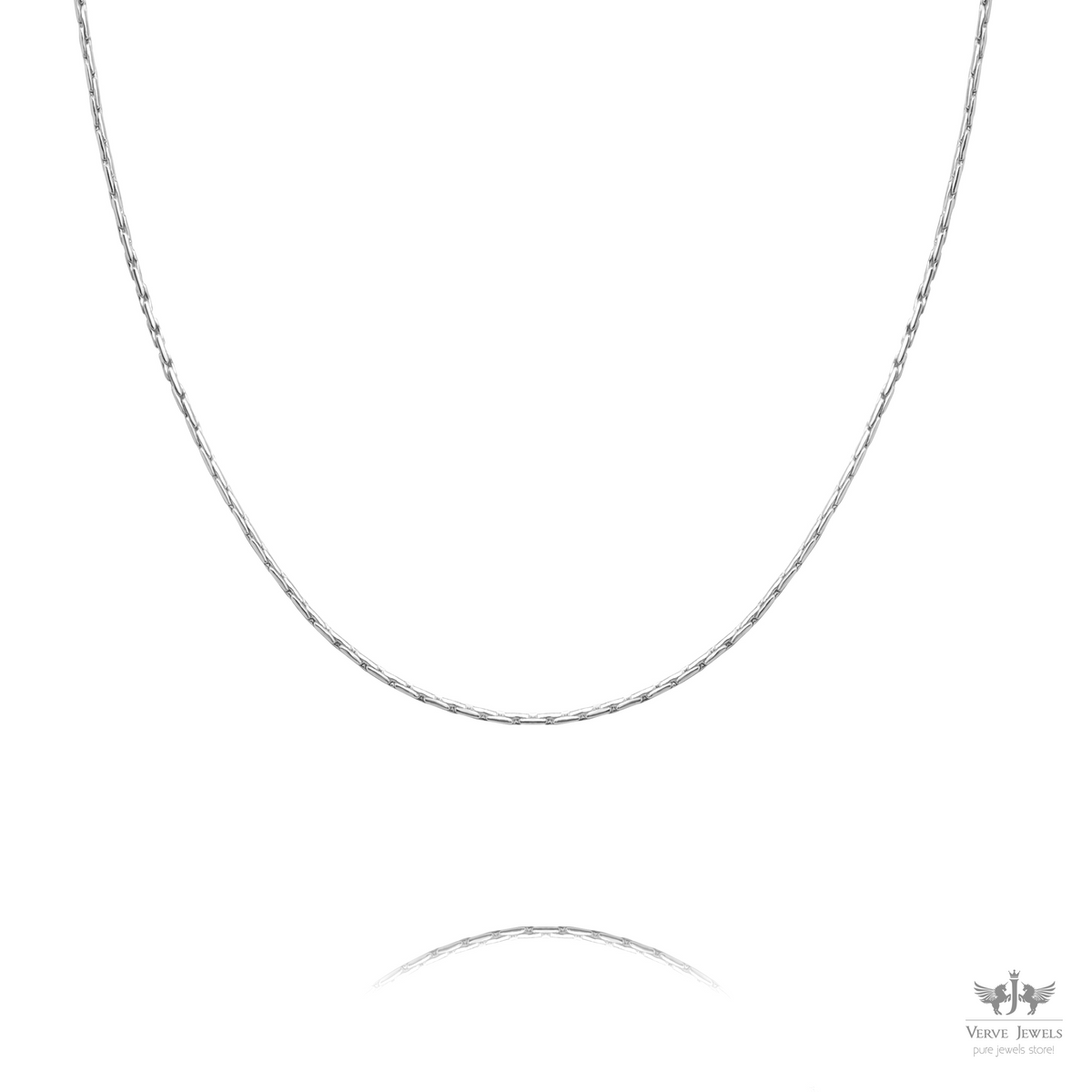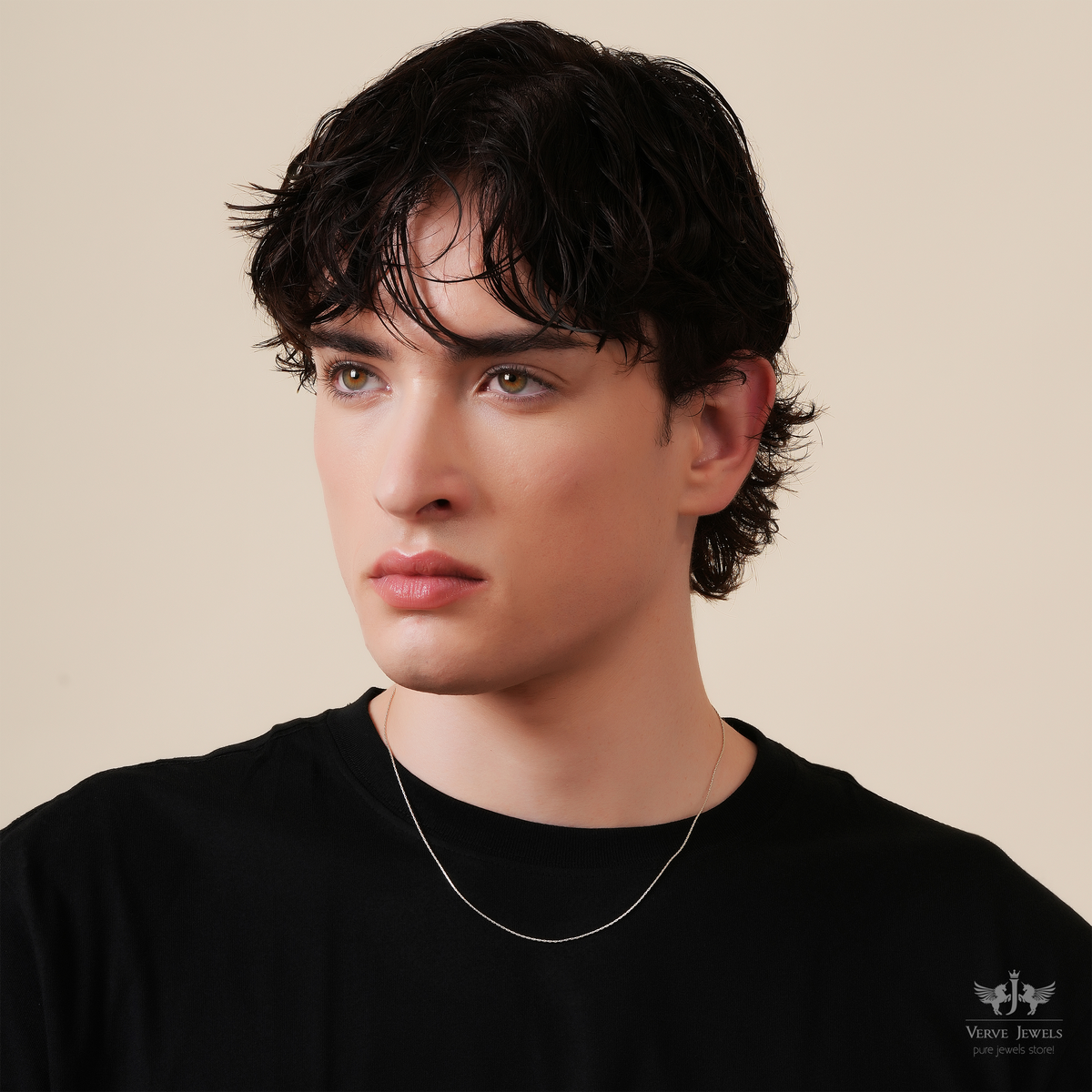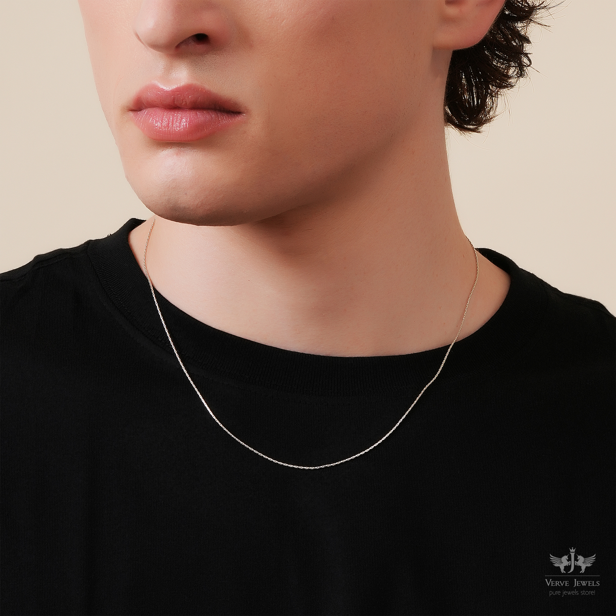 The PNR Chain Necklace is a simple one, that's inspired by the elegance of clean lines and minimalist design. Whether you're dressing for a presentation or a weekend brunch, it's a delicate one that adds the right touch of sparkle. This 1mm width offers you a feather-light feel, what more could you ask for?