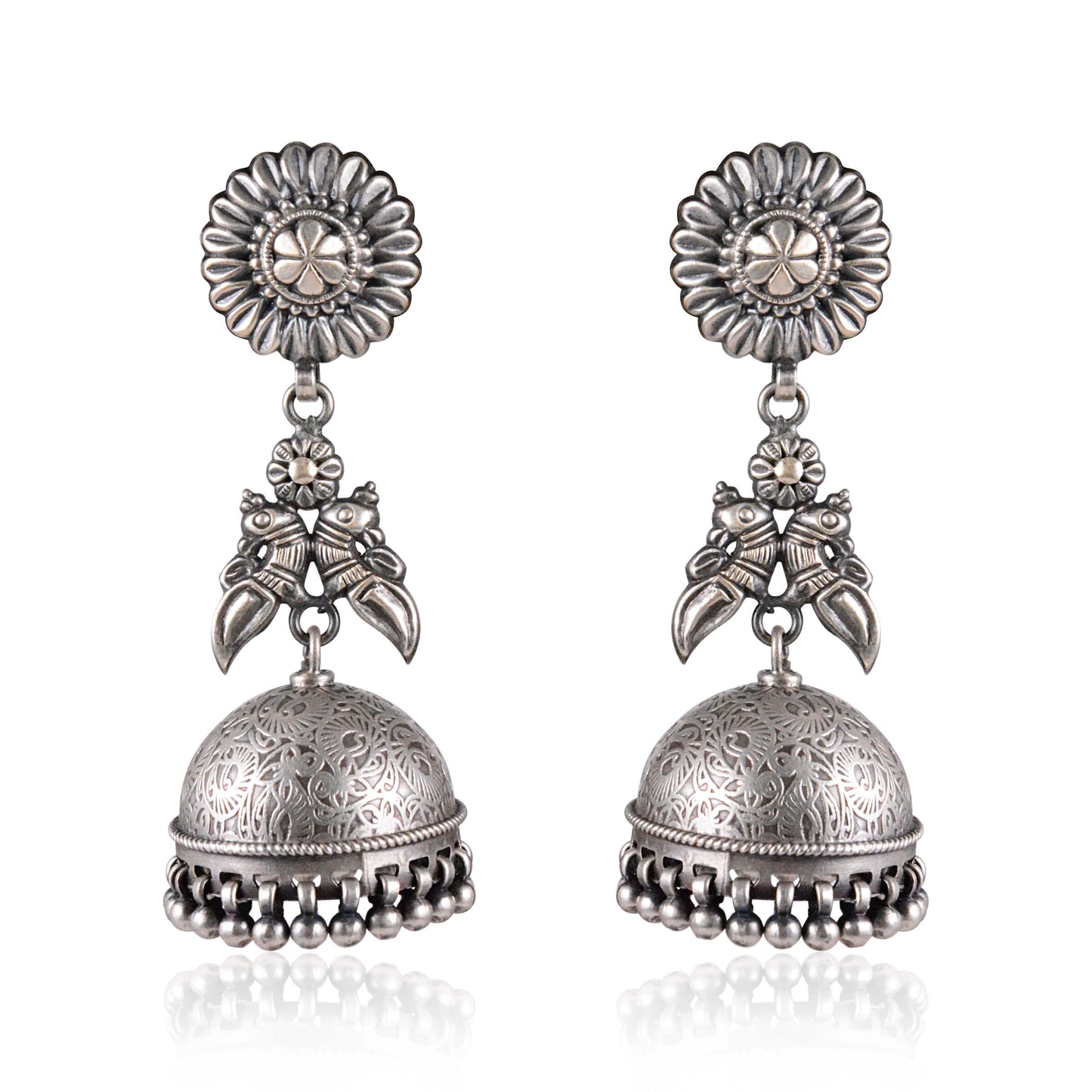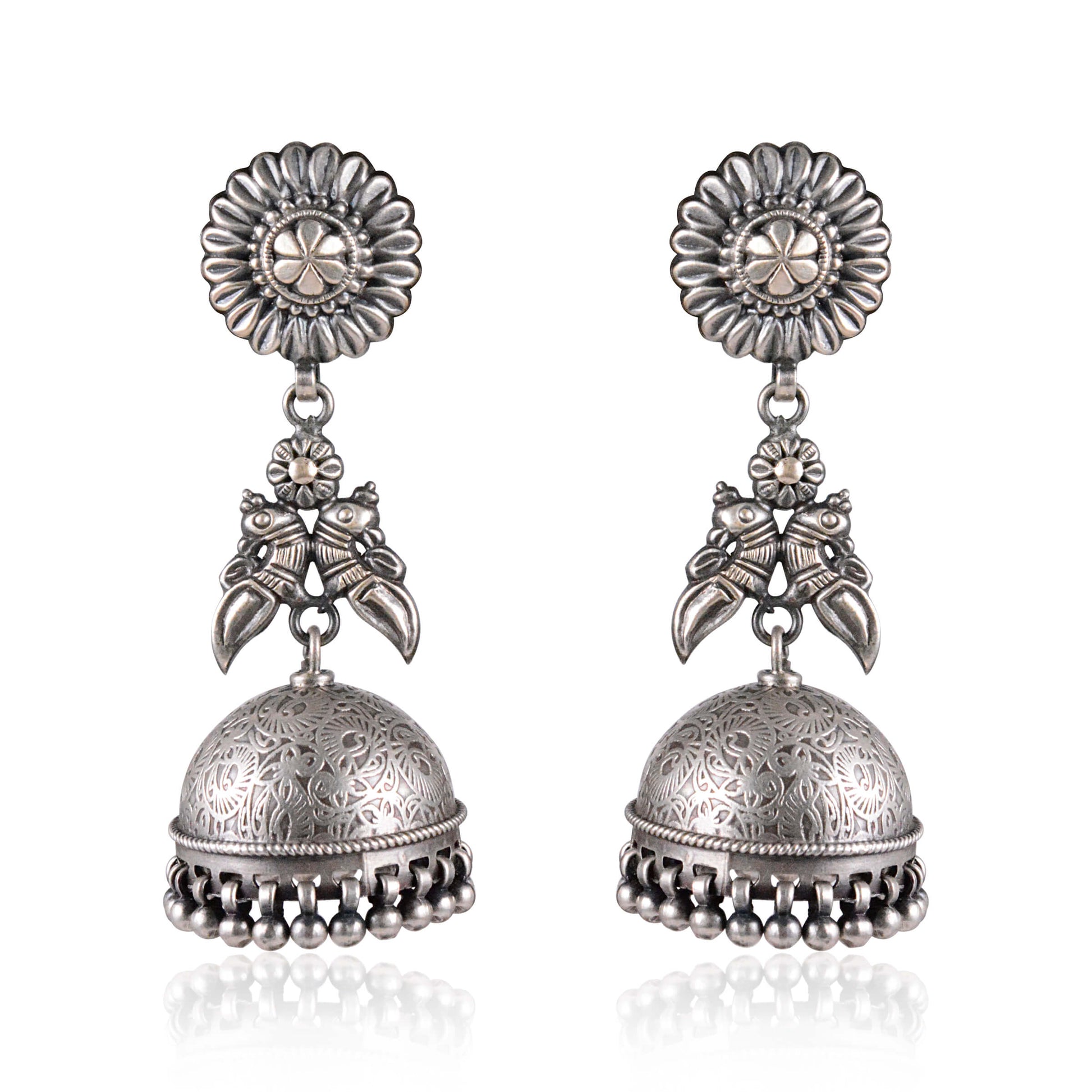 This silver long jhumki is made with sterling silver with an oxidised finishing. This earring has an elegant look, wear it daily or occasionally it will enhance the look always
