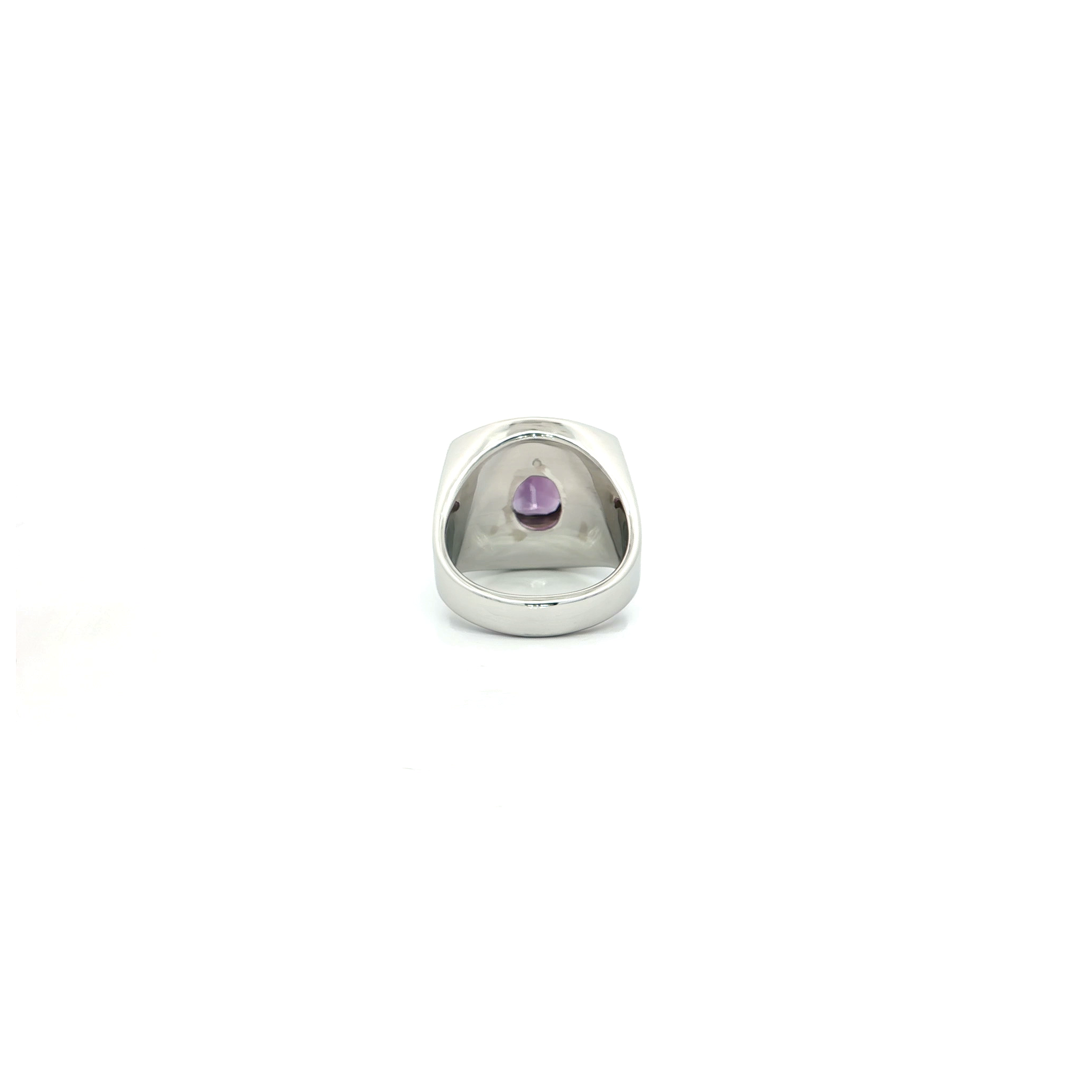 Exude sophistication with this striking sterling silver signet ring, featuring a smooth oval-cut amethyst. The vibrant purple gemstone is a captivating focal point, ideal for adding a touch of refinement to any ensemble. This exquisite ring blends classic design with a modern edge, perfect for making a distinguished statement.